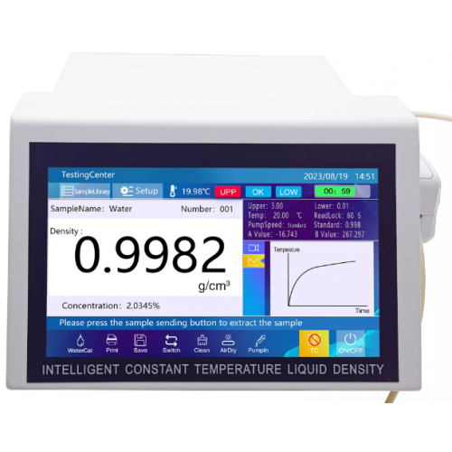 0,0 - 3 г/см3. Точность ± ± 0,0008 г/см3. Система охлаждения Пельтье. Полностью автоматический денситометр жидкости использует принцип метода колебаний U-образной трубки, эффективно сочетая в себе технологию точного контроля температуры Пельтье и технологию видеокамеры высокой четкости, что обеспечивает не только точные, стабильные и надежные результаты испытаний, но и делает процесс испытаний эффективным и удобным.