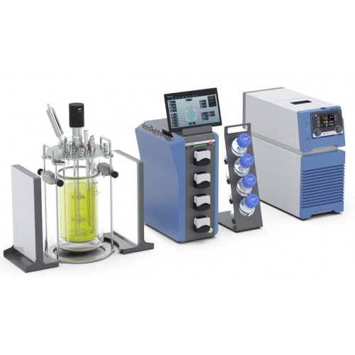 Температура биопроцесса контролируется с помощью нагревательного рукава для одностенных стеклянных сосудов (RT... 60 °C). Температуру в двухстенных стеклянных сосудах можно точно задавать с помощью комбинированного циркулятора HRC 2 для нагрева и охлаждения (5…80 °C)