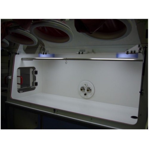 В каждой камере для стерилизации имеется по одному внешнему сенсору H2O2 (0-100ppm). - Подвесная штанга с крючками в зоне потолка камеры для легкого поднятия перчаточно-рукавного узла с рабочей поверхности, облегчения правильного дистрибуции газа и подвешивания отдельных элементов оборудования.