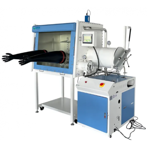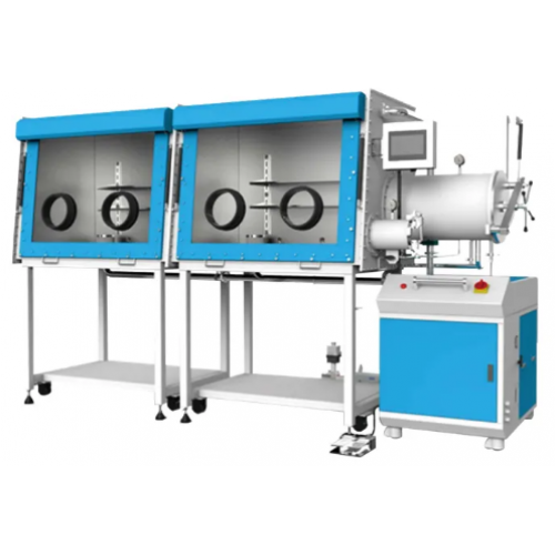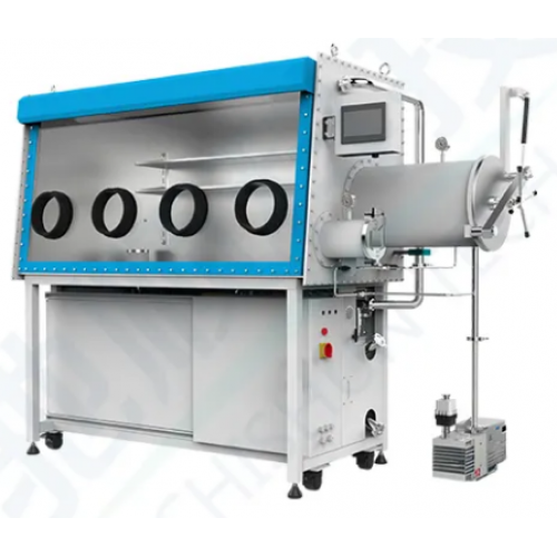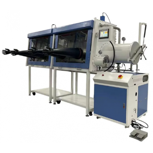 - Малая камера: Цилиндрическая Ø 155 мм х 320 мм (нержавеющая сталь 304), соединенена с перчаточным боксом, управляется ручным клапаном. вакуум:≤-0,1Мпа.